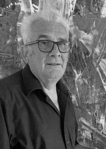 hat als Autodidakt über Jahrzehnte eine eigenständige abstrakte Bildsprache entwickelt. Ohne Planung entstehen großformatige Werke aus einem emotional geführten Prozess. Acryl, Bitumen, Kohle und Schellack verbinden sich zu kraftvollen, experimentellen Bildwelten.
